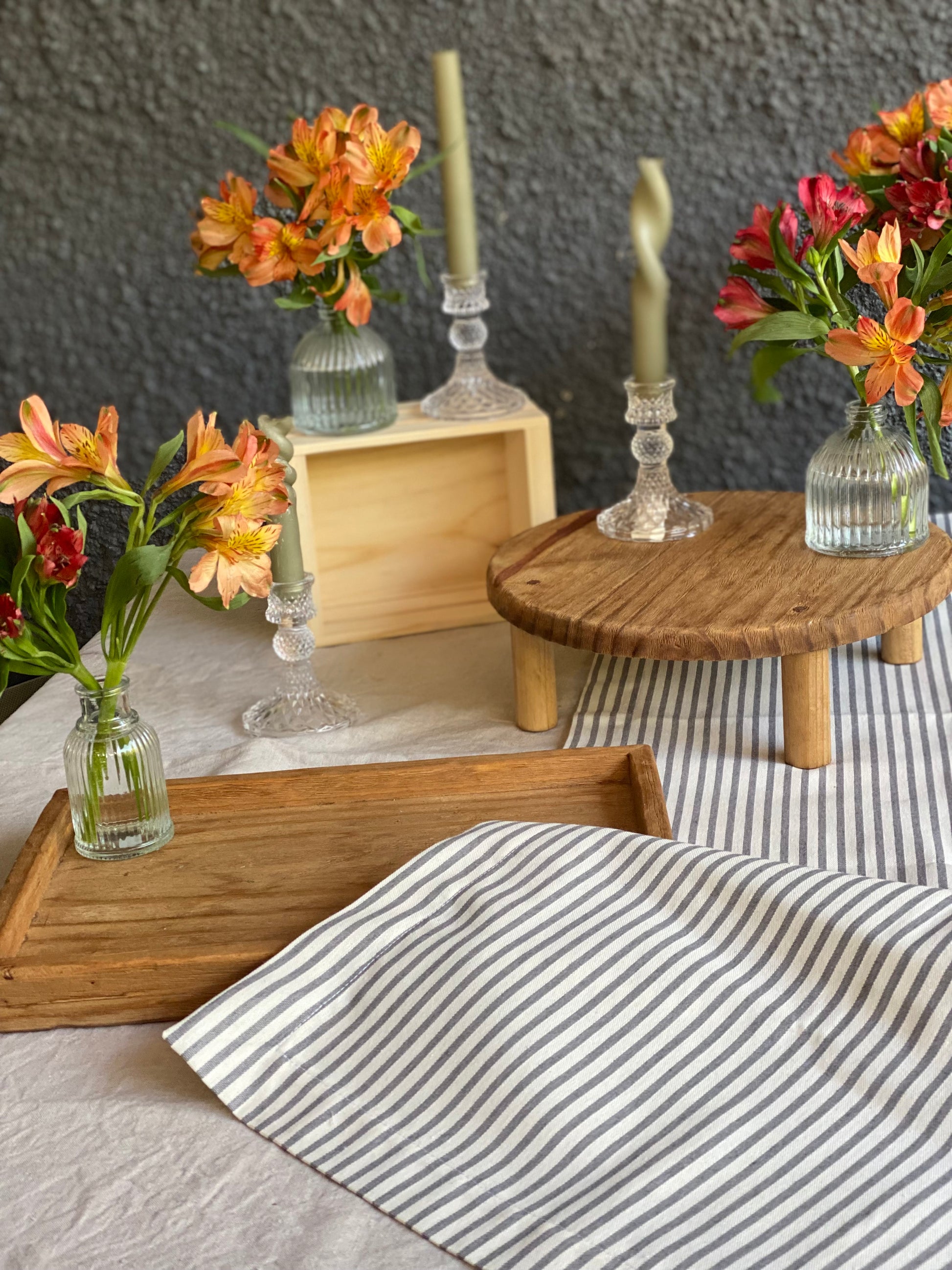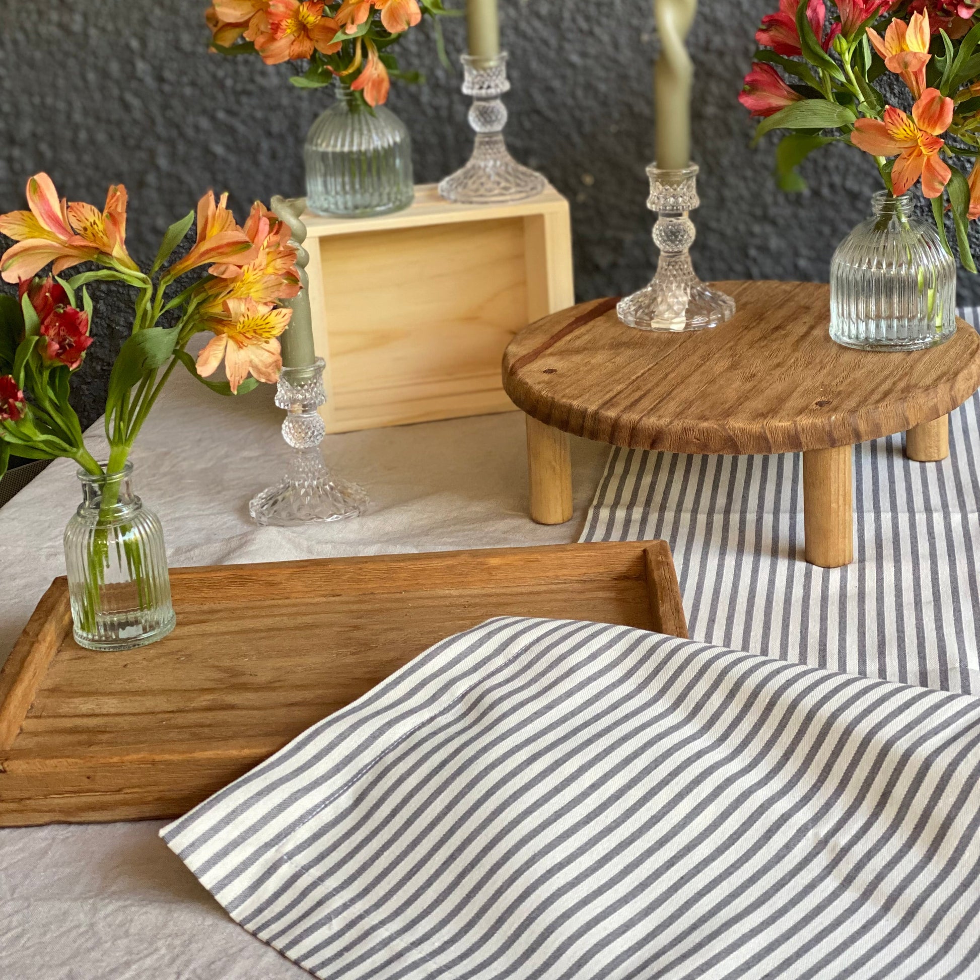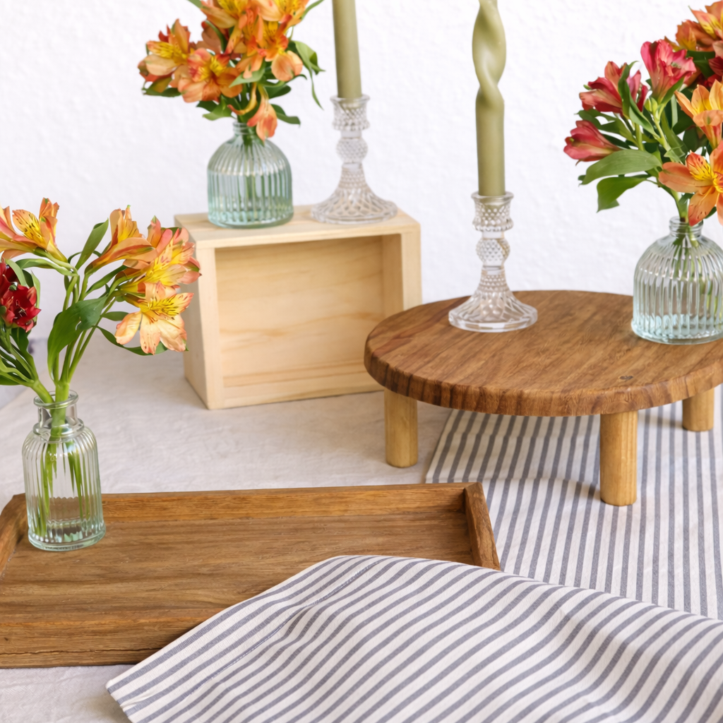 El Kit Celebración Rústico combina materiales nobles y tonos naturales para lograr una mesa acogedora, con capas y altura, perfecta para celebraciones familiares y momentos compartidos.